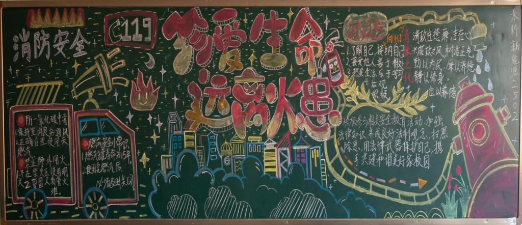 活动通知一经发布,便得到各团支部的迅速响应,同学们热情高涨、踊跃参与。同学们分工协作、各展所长,将安全常识转化为鲜活生动的视觉作品。黑板上,“消防安全”主题字样醒目亮眼,鲜艳的色彩搭配既烘托了安全氛围,又极具视觉冲击力;火灾逃生路线图标注清晰、步骤明确、一目了然;防火常识、初期火灾扑救方法等核心内容详实准确,字字句句传递着安全理念。更有班级别出心裁,融入了消防小故事、安全警示语等内容,让黑板报成为校园里一道独具特色的安全宣传风景线,吸引着师生们驻足观看、学习交流。