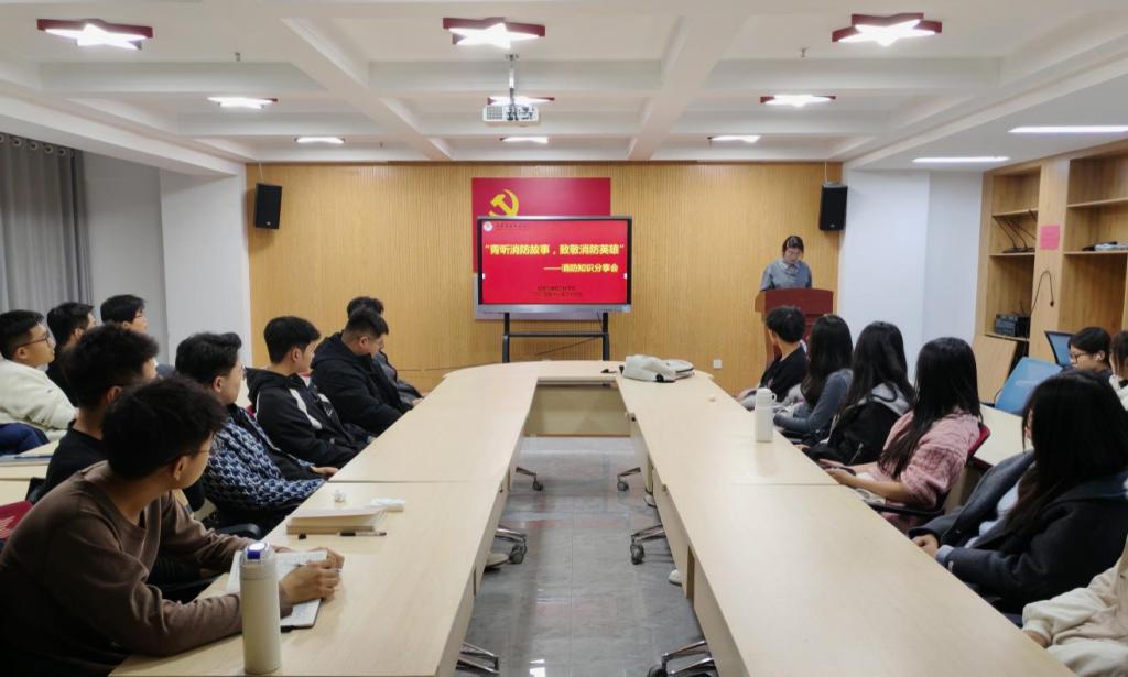 活动现场,学生代表通过PPT直观演示,从火灾预防的关键环节、初期火灾的科学扑救方法,到紧急疏散时的逃生技巧、常用消防器材的规范操作流程,讲解内容详实全面、条理清晰。随后,4名同学结合生活场景分享消防注意事项,围绕宿舍合规用电、实验室危险品规范存放、外出时消防通道识别等高频场景展开细致讲解,让抽象的安全知识变得鲜活具体。在交流感悟环节,学生代表纷纷表达对消防“逆行英雄”的崇敬之情。