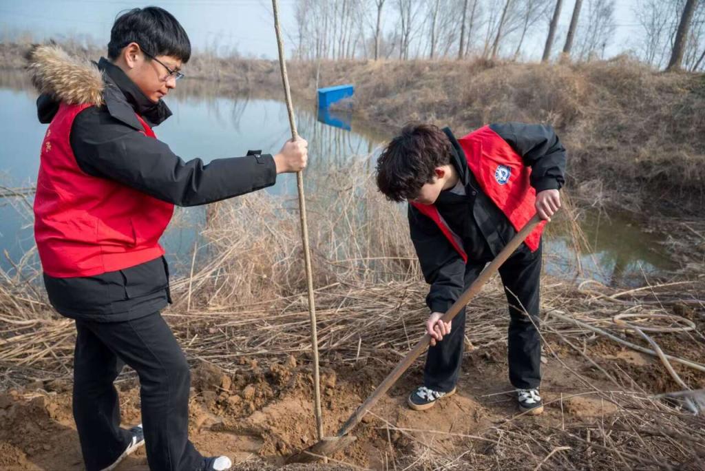 春染大地,万物生发。在第46个植树节到来之际,恰逢学雷锋志愿服务月,365上市公司英国组织学生志愿者联合宋官屯街道办事处,共赴张官屯池塘沿岸开展义务植树活动,以实际行动为生态文明建设增添新绿,以躬身劳动践行新时代雷锋精神。